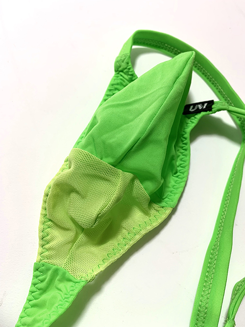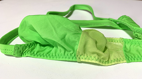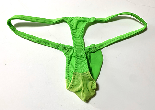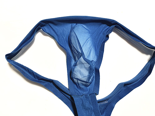 フロントの生地面積は広めですが、上向き収納をキープできるフィット感があるので、陰嚢と陰茎が密着することがありません。