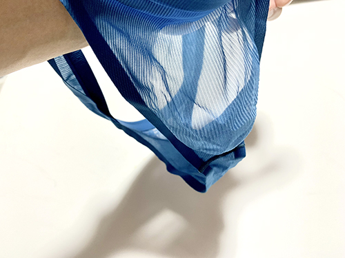 表面の手触りは撫でるとサラサラですが、クシャっとした時に少しだけ硬さもあるかなという感じです。(若干ゴワゴワとしているような感触)